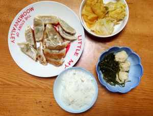 1/20 (土) 夕飯 餃子、こぶとつみれ煮 ごはん お漬物